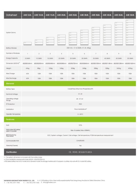- Bateria z serii AXE ma model EU i model ogólny. Inwertery magazynujące sprzedawane w krajach europejskich działają tylko z modelem EU baterii AXE.