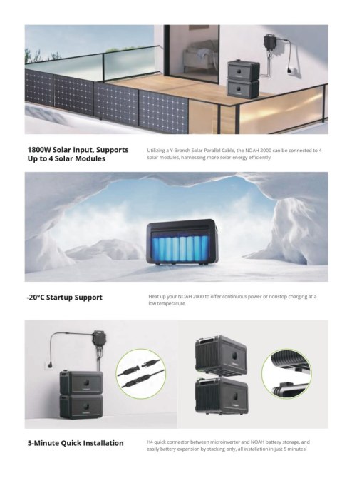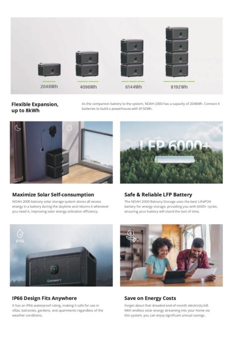 Problemlose Installation, endlose Energie: Erleben Sie die Kraft erneuerbarer Energien mit Solar Storage, dem besten Solarsystem für Ihren Balkon. Entwickelt mit einer großen LiFePO4-Lithiumbatterie mit einer Kapazität von 2048 Wh für bis zu 4 Panels. Die Installation ist unglaublich einfach und dauert nur 5 Minuten, und die solide IP66-zertifizierte Konstruktion sorgt für Langlebigkeit. Die intuitive ShinePhone-APP bietet Echtzeitzugriff auf Informationen und Steuerung direkt auf Ihrem Smartphone. Kompatible Hoymiles-Wechselrichter: HMS-350, HMS-400, HMS-450, HMS-800