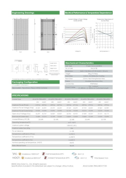 JINKO JKM630N-78HL4-BDV BIFACIAL 630W JK03M (Tiger neo N-Type)