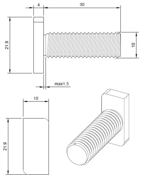Śruba młoteczkowa (teowa) M10*30