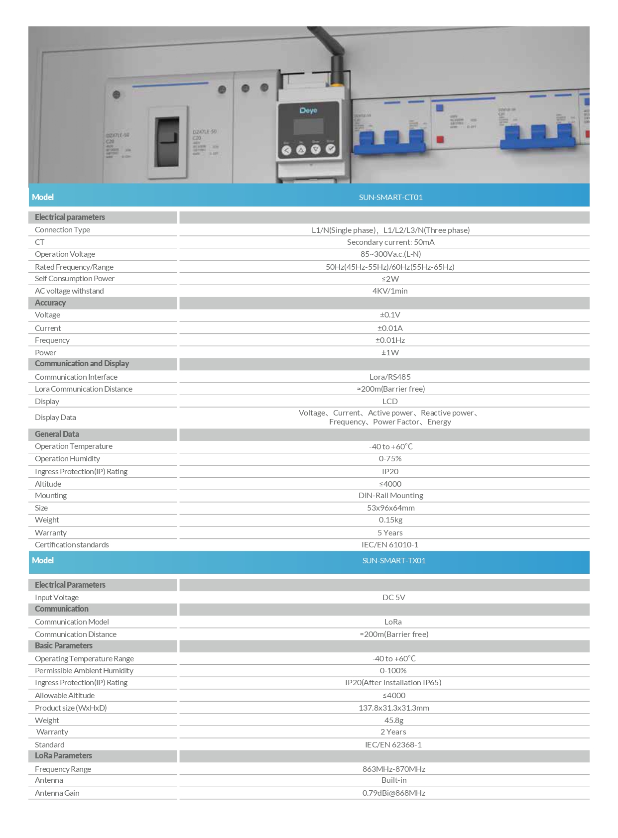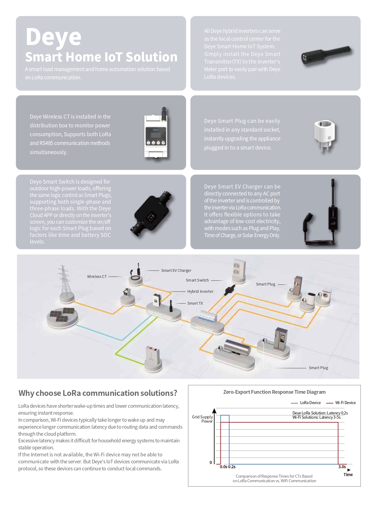 TX01 is a “smart transmitter” — a module that connects to the Deye inverter and enables communication with other LoRa devices (e.g., smart meters, smart sockets, switches, EV chargers). This allows the entire installation — the inverter and peripheral devices — to become part of an intelligent energy management network. You can then define automatic rules: priority / lower-priority loads, EV charging control, device management depending on PV production, battery state of charge, or time of day.