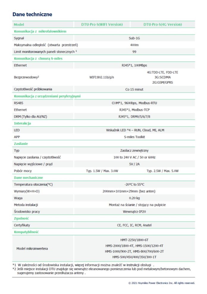 DTU-PRO-S 4G LTE MODULE works ONLY with 3-PHASE HMT AND 1-PHASE HMS microinverters.