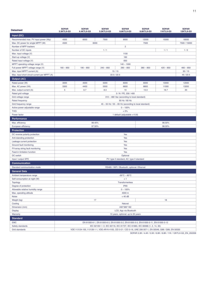• SOFAR 6.6KTL-X-G3 3-phase 2xMPPT